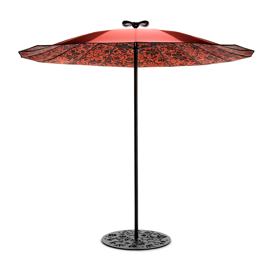 Geisha. That’s the name of the design parasol that Marcel Wanders created for Symo Parasols. The sublime parasol embodies the essence of the mysterious Japanese tradition of the geisha with her understated, soothing ambiance. With stylised flower motifs for the inside of the parasol. A metal bow adorns the top, a typical accessory on a geisha’s kimono. Geisha is produced by the Belgian parasol manufacturer Symo, in its famous range of Sywawa ‘Sunbelievable Design Parasols’.